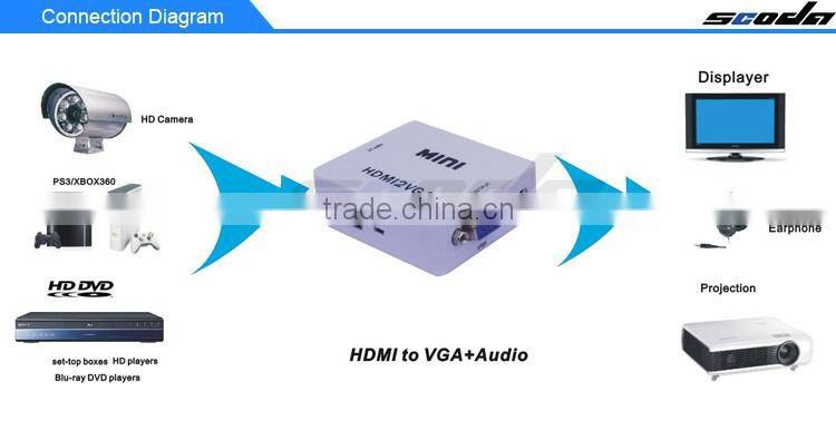 Mini 1.3 Hdmi to VGA Audio Converter Connection PS3, XBOX360, Blu-ray DVD, HD Set-top Boxes, CRT / LED Display Ect.