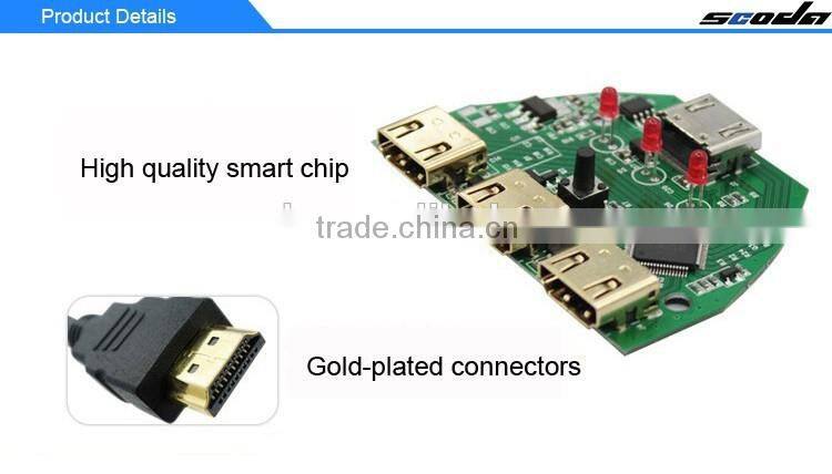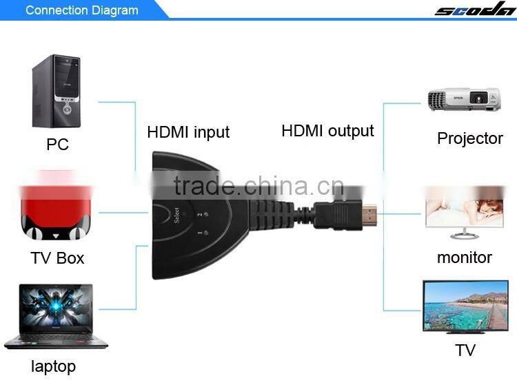 HDMI switch series for digital high resolution video signal switching output to a display device of the users, is a set of fairly ideal solution. All input port at the same time provide high resolution video connection, outlet send high resolution video to the player, the user can through the switches on the button, switch selection, such as satellite system, the signal source of HD DVD players and other devices.