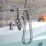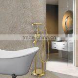 Single Handle Floor Standing Brass Bathtub Tap With Hand Shower