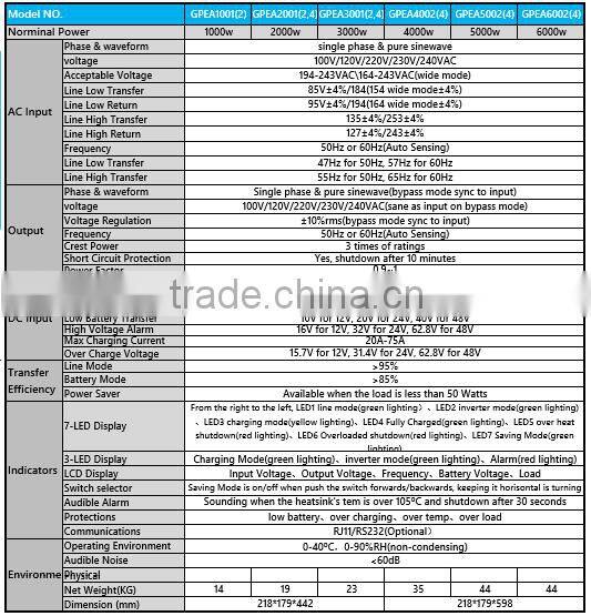 GP-inverter 5KW LED Display Combined Inverter Charger Pure Sine Form 24V/48V