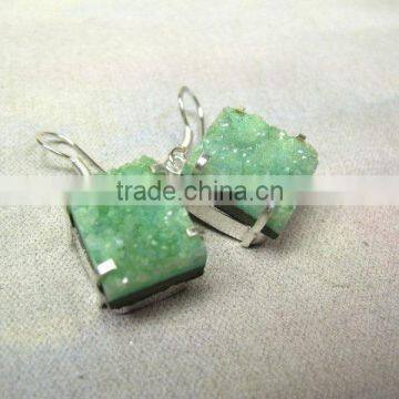 GREEN DRUSY TITANIUM SILVER EARRINGS, 1.75 INCH