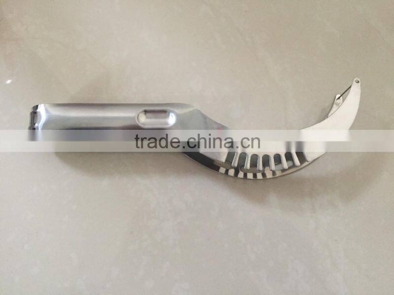 Appreciate immediately: the kitchen utensil that combines the functionality of a knife with the handiness of tongs to serve slices of watermelon.