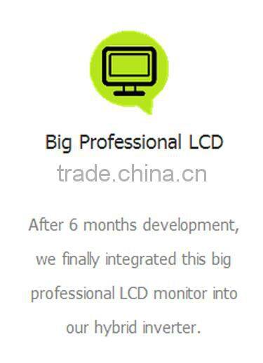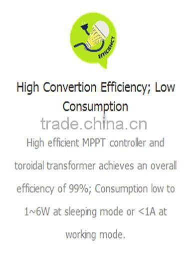 Features 1. MPPT Charge mode, peak efficiency up to 99% 2. Maximum PV input DC170V 3. The controller can be upgraded online 4. Connected battery types: Sealed lead acid, Vented, Gel/NiCd battery/Other types of the batteries optional 5. LCD / LED display 6. RS232 communication and protocol can be provided 7. Controllers can be connected in unlimited parallels | ![]() | ![]() |