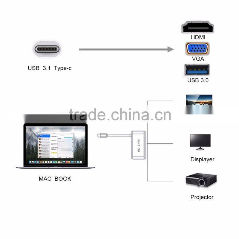 BC-LINK USB 3.1 Type-C to HDMI + VGA + USB 3.0 A F+ type C F USB 3.1 HUB