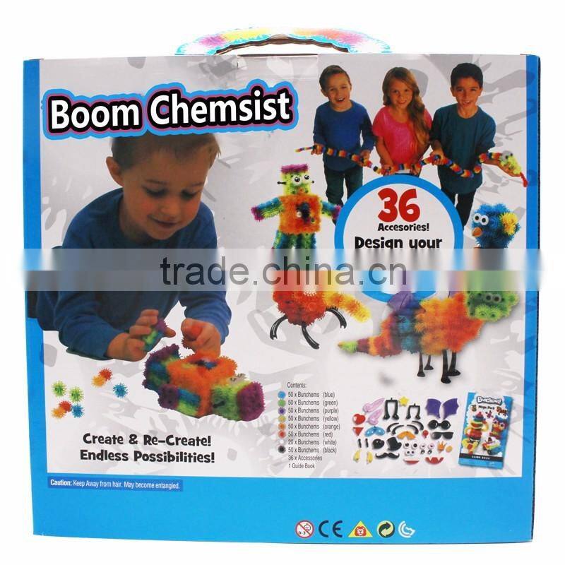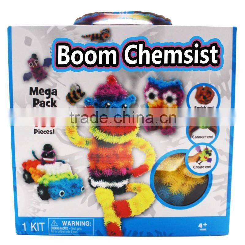 The Boom chemrist Mega Pack allows you to build 36 amazing 3D creations including: owls, bears, octopi, cars, monkeys and more! Bring your creations to life using your imagination and 36 accessories. Eyes, wings, hats and feet, to make everything you build look super neat!2016 connect character toys,plastic fun creating toys,connects toys