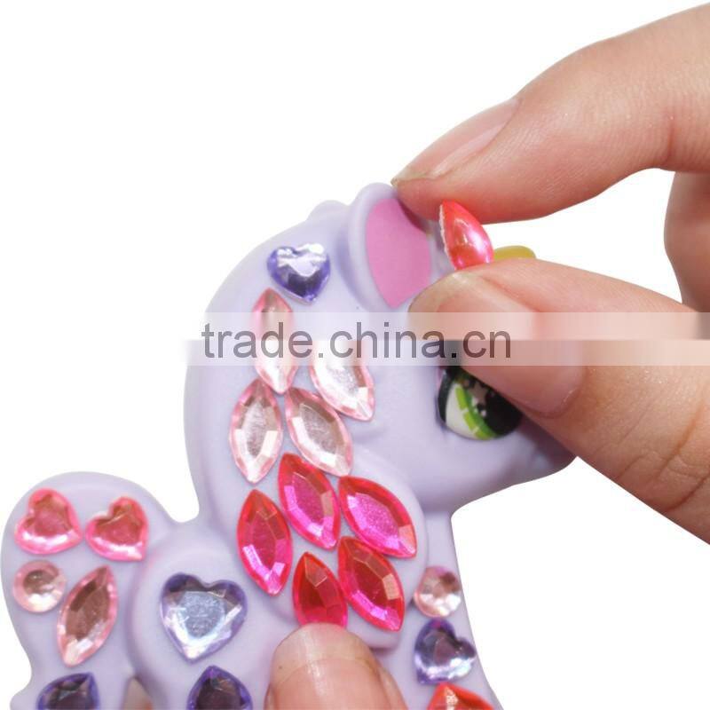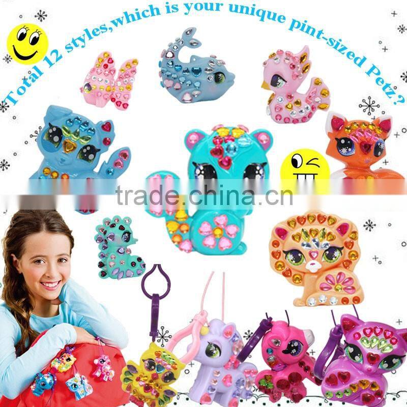 It was easy to decorate their glitter petz with the peel and stick gems.