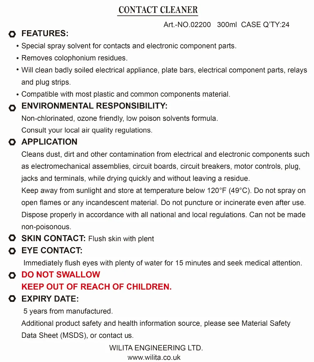 WILITA Electronic Contact Cleaner Spray 300MLUS$ 1.9 - 2.38MOQ: 768 Pieces