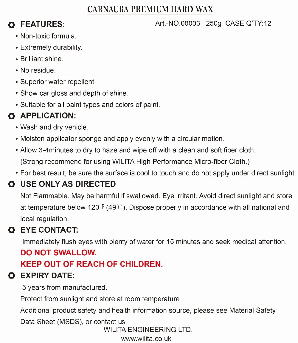 WILITA Carnauba Premium Car Hard Wax and Polish