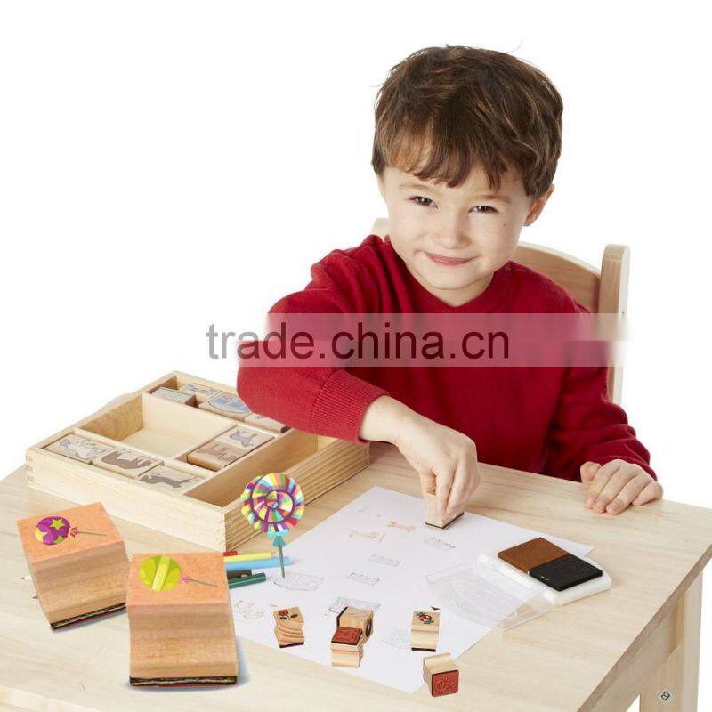 Mini Cartoon Wood Mounted Rubber Stamp Seal Box Kit for DIY