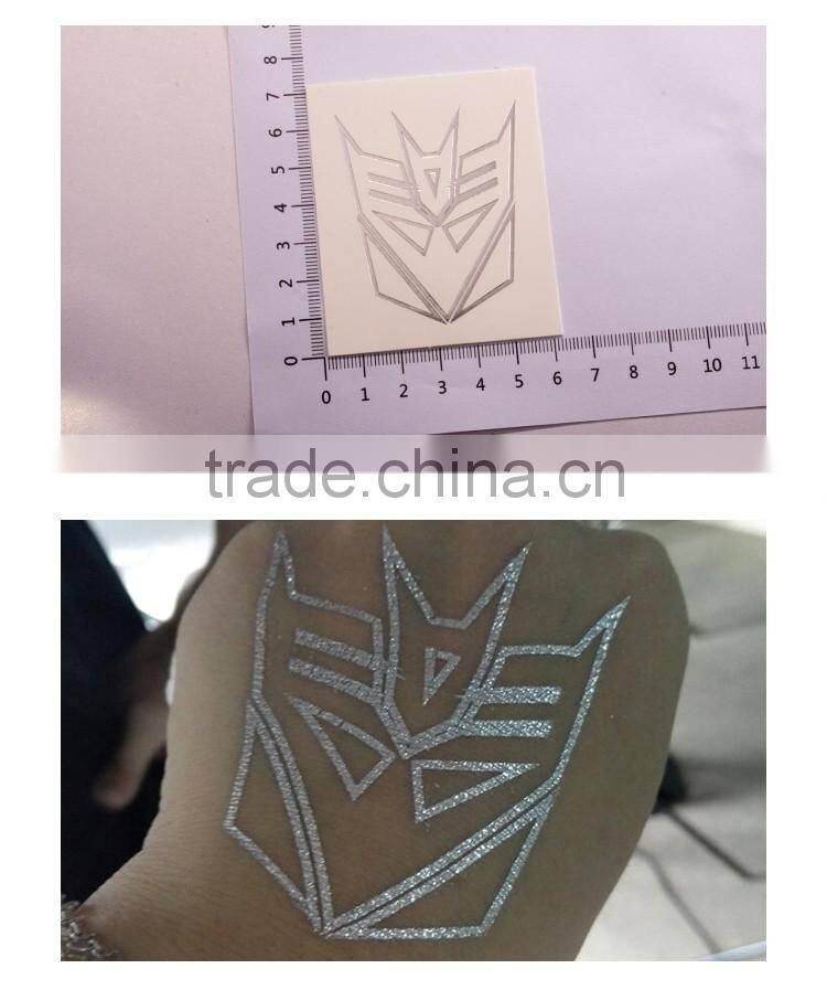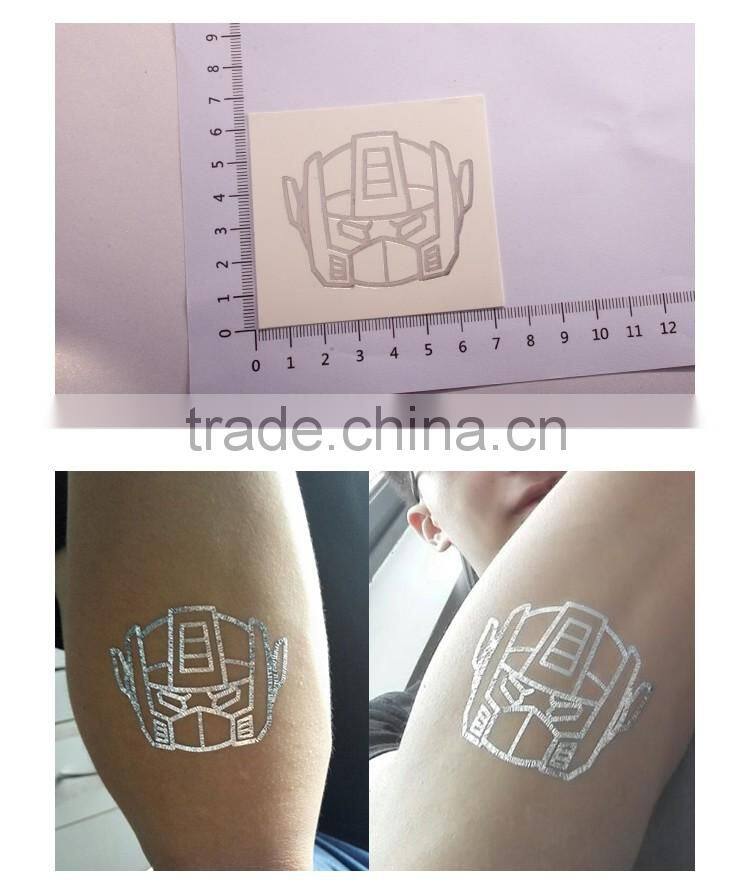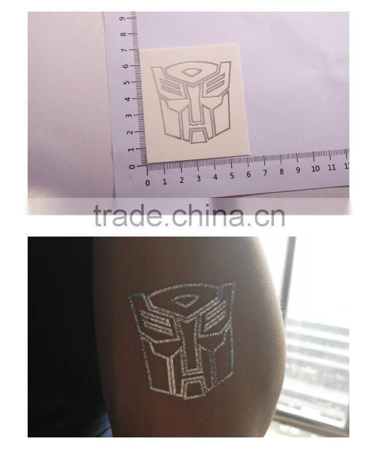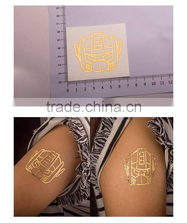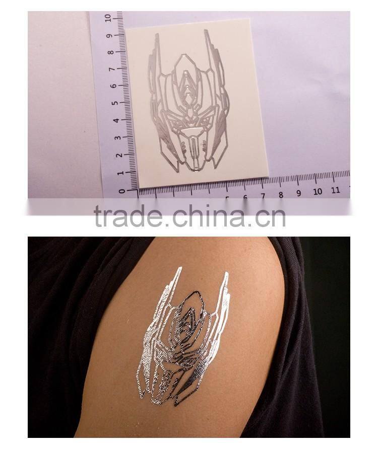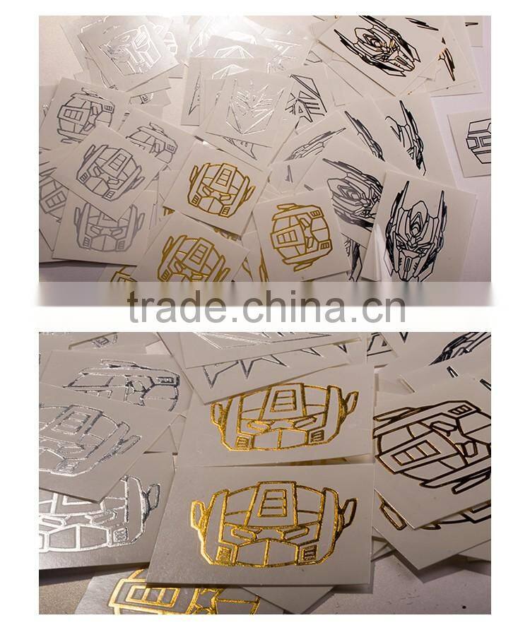OEM Custom Cartoon stickers Transformers tattoos gold and silver body tattoo