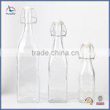 Wholesale Market Bulk Clip Lid Fruit Juice Glass Bottle Transparent Fashion Square Glass Water Bottle