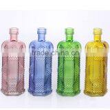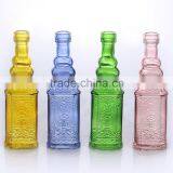 Unique Design Multicolour Embossed Cylined Shape Glass Oil Bottle