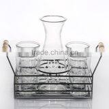 Unique Design Cock Embossed Transparent Glass Milk Bottle With Iron Stand With Cup