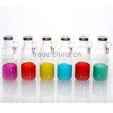 Hot Sale High Quality Small Lovely Glass Milk Bottle With Muliticolour Lid With Handle