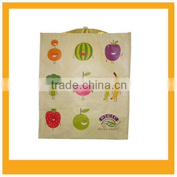 It is a synthetic fibre, it used to be a plastic bottle, such as beverage, food and other liquid containers. The PET material in our bags is based on 100% recycled PET fabric. The 14 needles material can be laminated directly, but 22 needles material can be silkscreen or hot transfer printing, the bags are 100% recycled.
