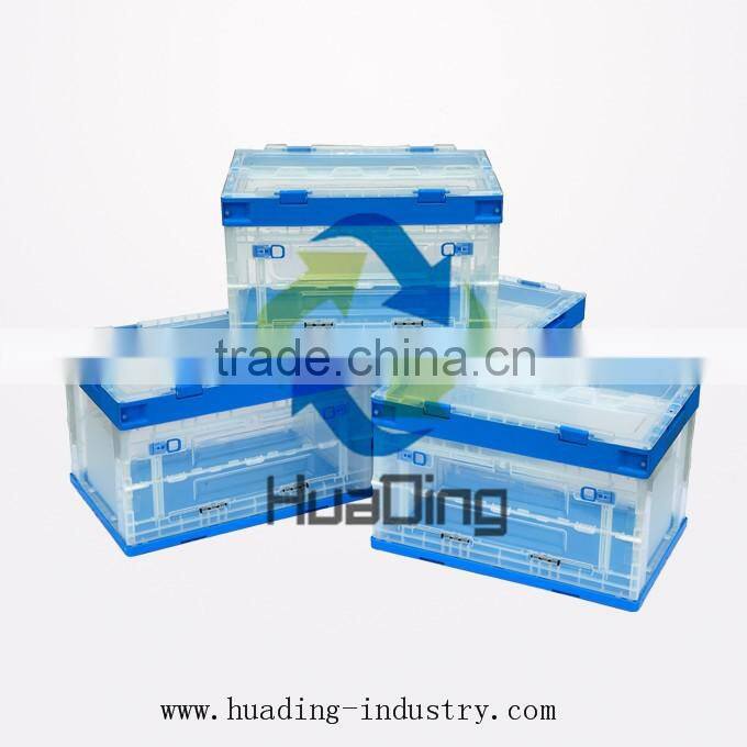 600*500mm Foldable Plastic Crate With Lid Plastic Collapsing Folding Crate