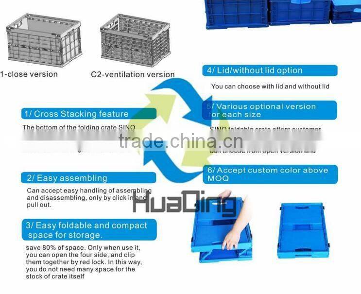 600*500mm Foldable Plastic Crate With Lid Plastic Collapsing Folding Crate