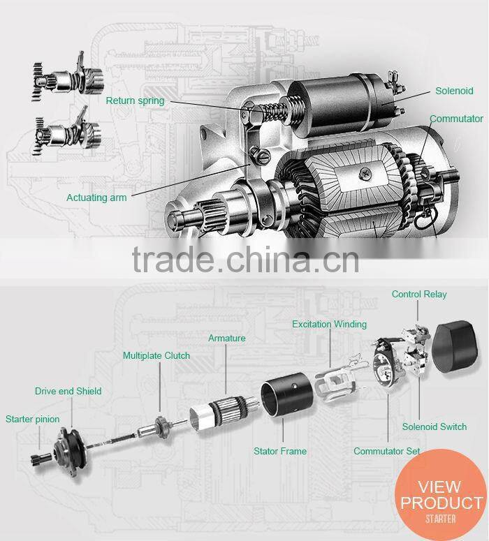 | STARTING MOTOR | 1.High-voltage tested armature and field coils to ensure reliable performance 2.Premium copper terminals to ensure a clean source of electrical current 3.All-new armature, brushes, and pinion |