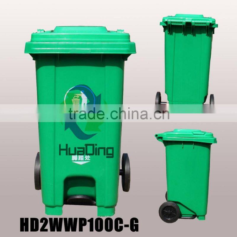 100L Plastic Garbage Can Rubber Wheel Trash Can HD2WWP100C-G