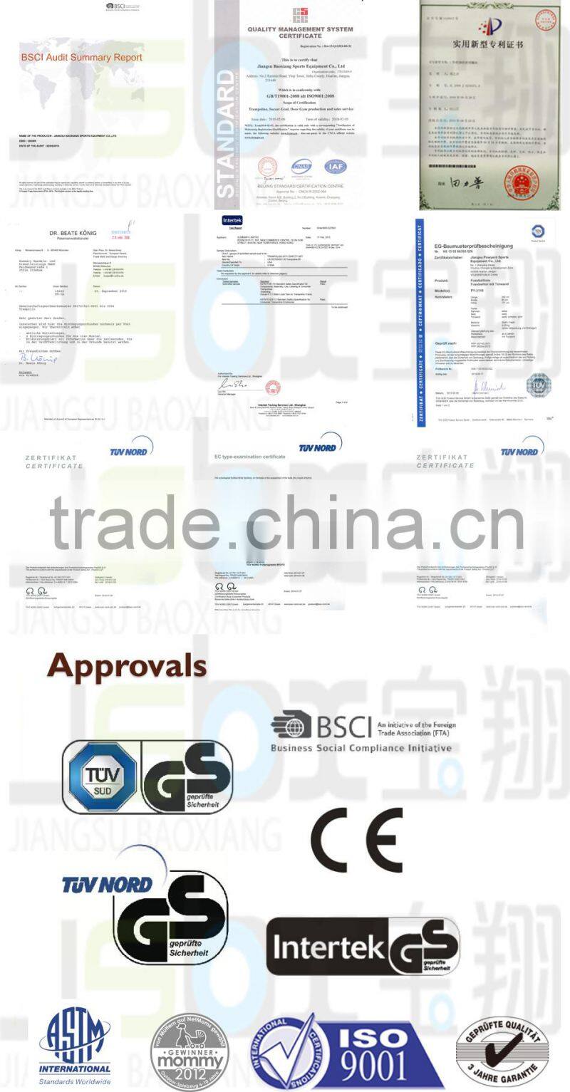 Jiangsu Baoxiang Sports Equipment Co., Ltd. is a manufacturer of Trampoine and in/outdoor sports product with well-equipped testing facilities and strong technical force.