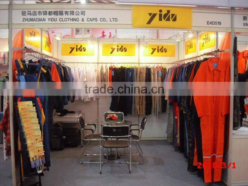 ZHUMADIAN YIDU CLOTHING & CAPS CO.,LTD,is specialized in manufacturing weaving working clothing for exportation.There are more than 700 workers.The monthly production is 150,000 PCS/SUITS.Our products are mainly export to Europe & Middle East countries etc.With strict and systematized management,high quality products at lower prices,sincere and considerate services,serious and honest attitude,we expect to establish long and firm business relationship with all friends all over the world.