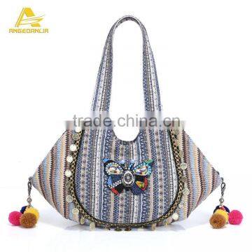 Winter Fashion Women's Indian Handmade Embroidery Handbag Striped Boho Bag