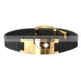 Noproblem P054 FDA Tourmaline Bio Magnetic Stainless Steel Silicone Casual Fashion Energy Bracelet