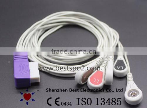 New Products Compatible With HP M4725A One-piece ECG Cable With 5 Lead Leadwires, Snap D-Type 11pin