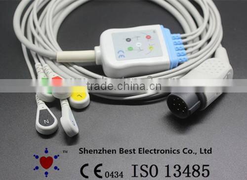 Nihon Kohden ECG Cable and Leadwires 8pin With 5 Leads, IEC With Snap