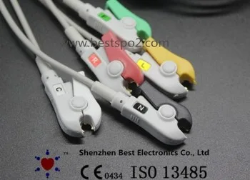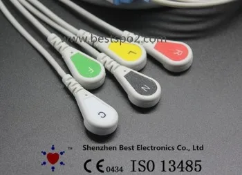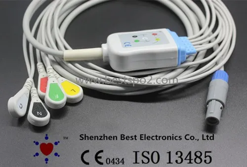 Biosys Patient Monitor ECG 5 Lead Cable and Leadwires IEC With Snap Connector ODU6pin
