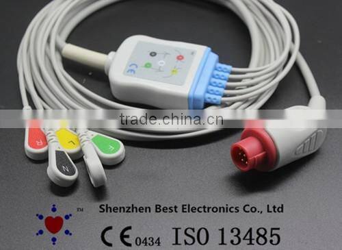 Bionet(Korea) 8pin ECG 5 Lead Cable and Leadwires, Snap, IEC