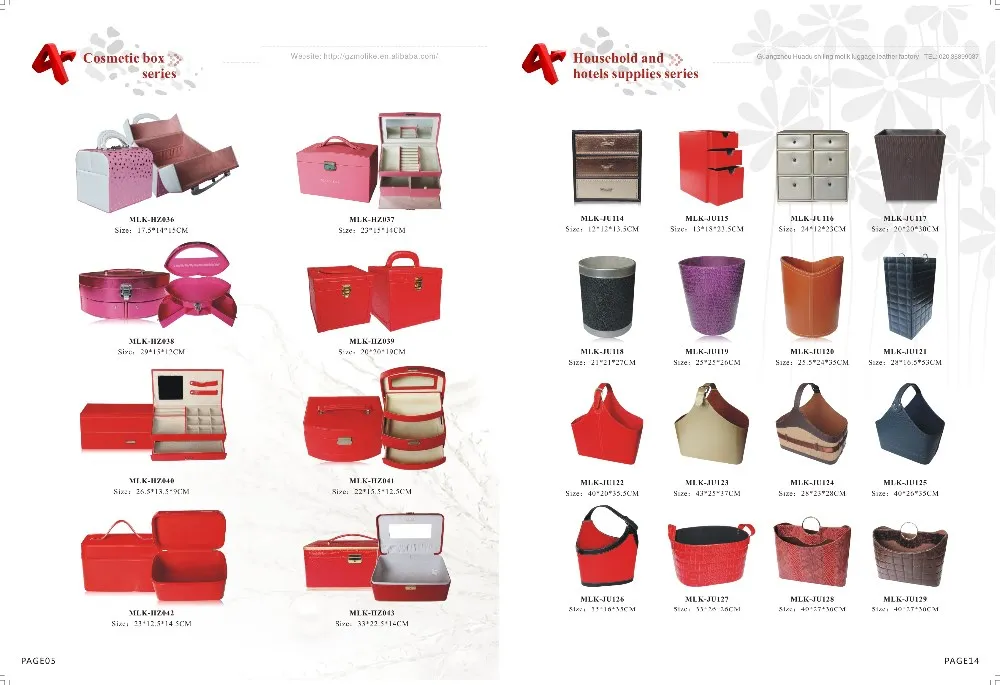 Guangzhou Shi Molike leather Products Co. LTD is a professional luggage company covering hundres of types, such as, jewelry boxes, make-up boxes, office supplies , leather cases and so on, which gathers designing, producing, and sales together. At the same time, there are high quality and resonable price, even strong company image. Since the company was founded, there are many customers around the world including Italy, Dubai, India, UK, Korea and so on.