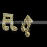Gold Plated Rhinestone Musical Note Stud Earrings