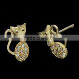 P10069 Fashion Jewelry Making Rhinestone Copper Material Cute Cat Earring Stud