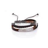 Hot Sale Multi Layer Leather Bracelet Customized Engraved Personalized Bracelet Adjustable Leather Bangle