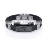 Fashion Stainless Steel Cross Design Black Silicone Bracelet Wholesale Bangle