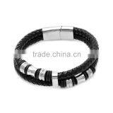 Home > Products > Finished jewelry & others > Men's Magnetic Buckle Stainless Steel Rope Leather Bracelet Braided Cuff Bangle Black