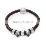 High Quality Brown Braided Leather Bracelace for Men Magnetic Clasp Leather Bangle Rope With Skull