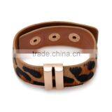 Wholesale Snap Fastener Leopard Leather Bangle Fashion Brass Adjustable Leather Bracelet