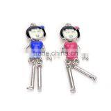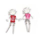 200pcs Blue Pink Beautiful Girl Pendants Novel Moved Enamel Craft Charms Handmade Necklace Pendants
