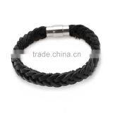 | Description | Men's Magnetic Buckle Stainless Steel Rope Leather Bracelet Braided Cuff Bangle Black |