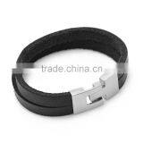 Black Double Layer Leather Bangles Fashion Brief Style Clasp Leather Bracelace