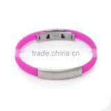 Wholesale Pink Green Blue Orange Silicone Bracelet Fashion Stainless Steel Bangle