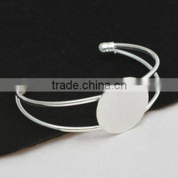 Wholesale 100PC 25MM Pad Adjustable Silver Plated Bangle Cuff Lock Blank Bangle Bracelet with tray