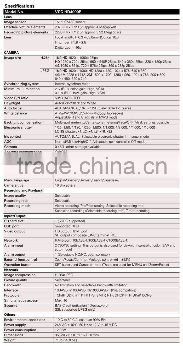 *4 Megapixel Full 1080P HD Network 10X AF Day&Night zoom camera