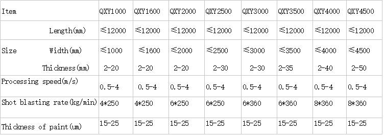 It's mainly used for surface treatment of steel plates and various structural sections ,include preheating, rust removal, paint spraying and drying , as well as for cleaning and strengthening of metal structure