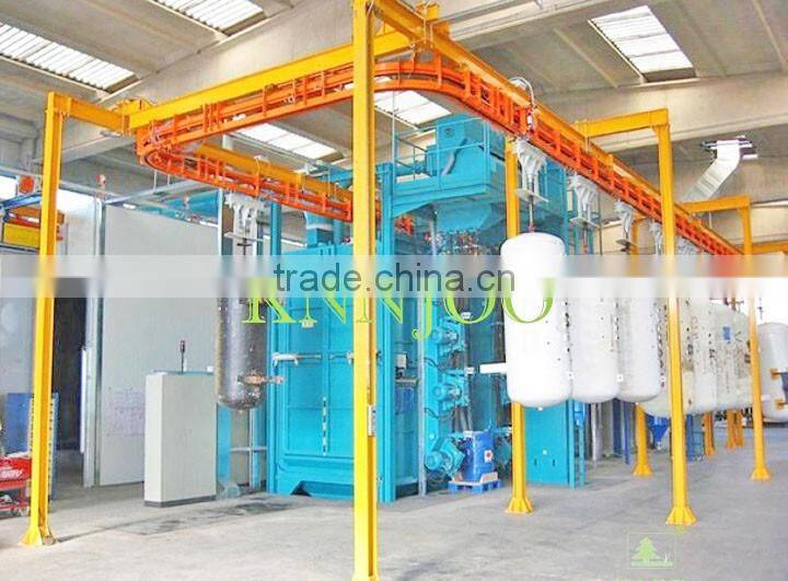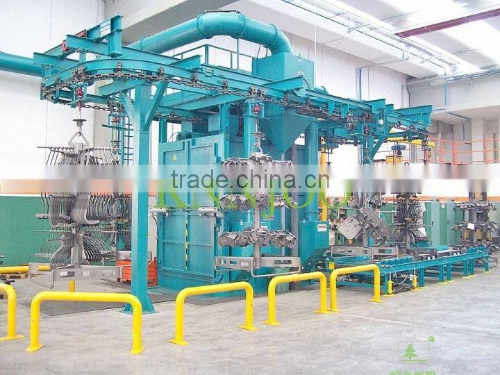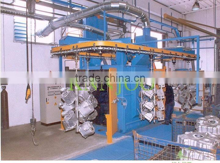 2. Workpieces can be transported continuously. The working procedure is that, setting the speed, hanging workpieces over the hooks, and removing them after shot cleaning .