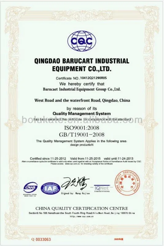 1. Supplier promise the name, model, specification and quantity comply with technical protocol,assuring the machine is new equipment with qualified material manufactured through perfect technology.There are no defects in design, material and technologies, which is suitable for propose of demander,and meets the standard of national industry. The quality is stable and reliable