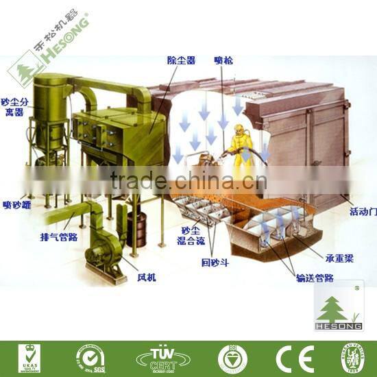 Sand blasting room also called sand blasting room, play room, suitable for large work piece surface cleaning, rust removal, increase the work piece and the adhesion between the coating effects, sandblasting room according to the abrasive way of recycling peening room is divided into: mechanical recycling type shot blasting room and artificial recovery type shot blasting room. The artificial recycling sandblasting room due to the economic and practical, simple, convenient, simple materials, greatly reduced the cost of sandblasting room cost, also accepted by many customers, especially small and medium-sized enterprises。
