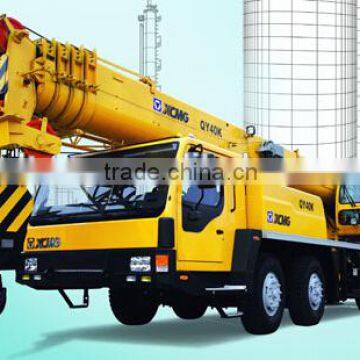 QY40K truck crane adopts full luxury cab with large view and new orthodrome streamline operating cab, which is good looking. Adopt five-segment oval rope retractable boom with double-cylinder and two-segment jib, greatly improving the working scope of the machine. The design of the streamline boom head is in keeping with the style of the machine. The boom and jib adopt new connection method, which is convenient to dismantle and install. It is equipped with the high-power environment protection engine, improving the chassis power and the trafficability.